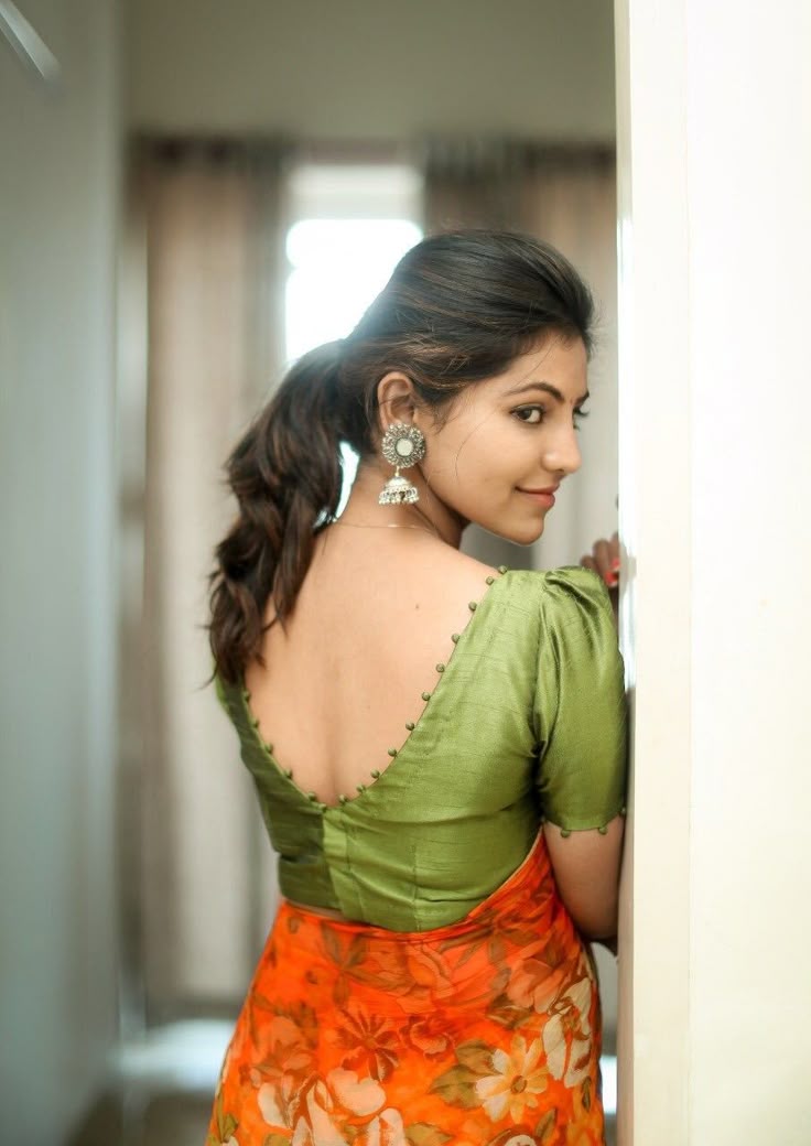 An attractive blouse must look striking from both sides. The unique necklines and details on the rear can be achieved through the cotton front and back saree designs that give the appearance of a uniform and trendy look.